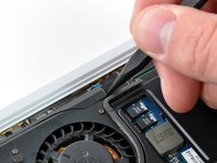 Use the tip of a spudger to move the cosmetic fan cover aside.
