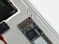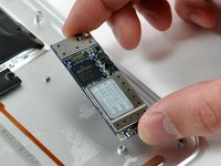 Remove the single Phillips screw securing the AirPort/Bluetooth board to the upper case.