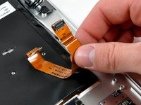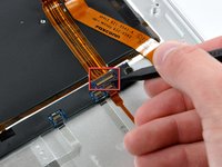 Disconnect the port hatch ribbon cable from the logic board by pulling it straight up by its black pull tab.