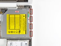Use this guide to replace the gray plastic upper case clips that secure the upper case above the optical drive opening.