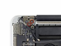 Remove the two 3.1 mm T5 Torx screws securing the aluminum hinge brackets.
