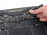 Remove the last remaining T8 Torx screw securing the display to the upper case.
