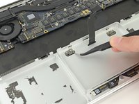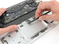 Grasp the plastic pull tab and pull the trackpad ribbon cable out of its socket.