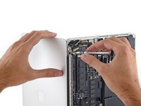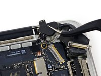 Remove the four outer 5.3 mm T8 Torx screws (two on each side) securing the display to the upper case.
