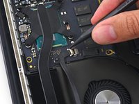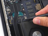 Grab the black plastic tab to flip the display cable connector open and pull it straight out of its socket on the logic board.
