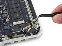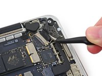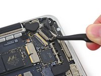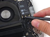 Use the flat end of a spudger to lift the battery connector straight up out of its socket on the logic board.