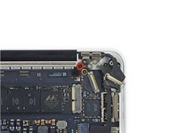 Remove the two 4.2 mm T5 Torx screws securing the aluminum hinge brackets (one on each side of the Macbook).