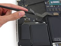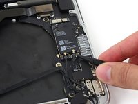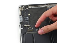 Use the flat end of a spudger to lift the battery connector straight up out of its socket on the logic board.