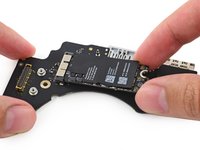 Use the tip of a spudger to push on either side of the I/O board connector to walk it out of its socket on the logic board.