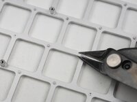 You will notice that when the rivets fly out they will leave a perfectly sized hole for all the tiny screws that we must use to firmly secure the keyboard to the case.