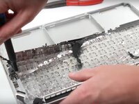 Once the backlight has been removed from the case we can now proceed to cover the back of the keyboard with some masking tape, this will help to catch all the rivets that will fly off when tearing out the keyboard.