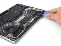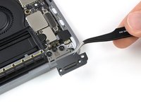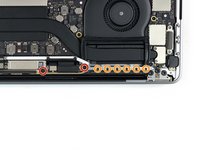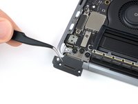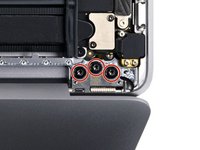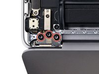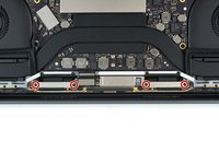 Remove the four 1.5 mm T3 Torx screws securing the two aluminum covers on top of the two display cable connectors.