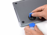 Apply a suction handle to the lower case near the front-center area of the MacBook Pro.