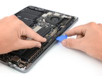 Insert one corner of an opening pick into the space between the lower case and the chassis.
