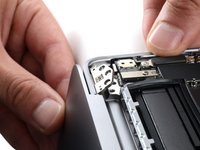 Remove the four 1.9 mm T3 Torx screws securing the plastic covers on top of the display hinges.