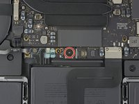 Use a T5 Torx driver to remove the 3.7 mm pancake screw securing the battery power connector.