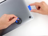 Apply a suction handle to the lower case near the front-center area of the MacBook Pro.