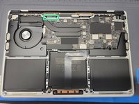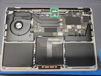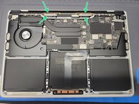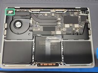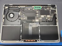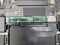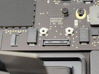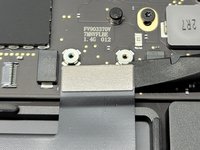 Locate the touchbar flex cable mess towards the top right of the Macbook