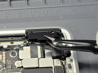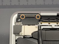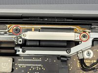Locate and remove the remaining 2x 4.5mm Torx T9 screws securing the 2 hinges to the MacBook