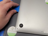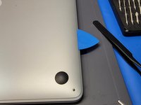 While creating the gap between the Macbook and the back panel, insert an opening pick into the gap about 0.2in.