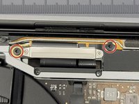Remove 2x 4.5mm Torx T9 screws that secure the hinge to the MacBook