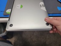 Once you reach about the middle of the Macbook, you should hear a click. This is good! You have now unhooked part of the back panel.