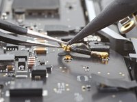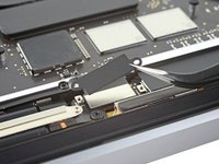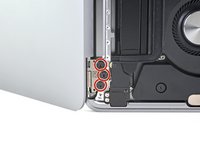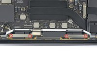 Remove the four 1.5 mm T3 Torx screws securing the two aluminum covers on top of the two display cable connectors.