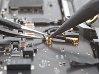 Remove the 3.7 mm T5 Torx screw securing the two antenna coax cables to the main board.