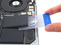 The MacBook Pro uses stretch-release adhesives to secure the battery. Some of the strips are hidden underneath the trackpad, so you’ll need to remove it first to access the strips.