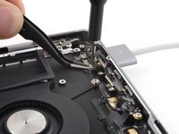 Use your 5IP Torx Plus driver to remove the two 2.7 mm-long screws securing the MagSafe port.