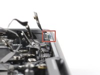 Peel back the tape covering the right speaker ZIF connector on the left side of the logic board.