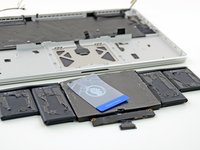 The lithium-polymer battery is glued rather than screwed into the case, which increases the chances that it'll break during disassembly. The battery also covers the trackpad cable, which tremendously increases the chance that the user will shear the cable in the battery removal process.