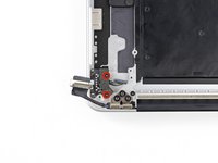 Remove the two 3.1 mm T5 Torx screws securing the aluminum hinge covers to the upper case.