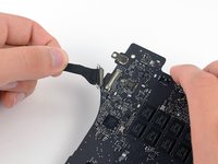 Use the tip of a spudger to pry the display data cable lock and rotate it toward the DC-In side of the computer.