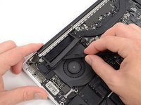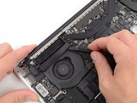 Insert the flat end of a spudger underneath the rubber heat sink cover on the right fan.