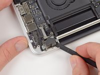 Using the flat end of a spudger, gently pry the battery connector straight up out of its socket on the logic board.