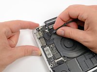 Remove the two 3.1 mm T5 Torx screws securing the aluminum hinge covers to the upper case.