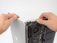 Use the tip of a spudger to pry the display data cable lock and rotate it toward the DC-In side of the computer.