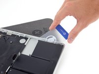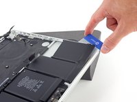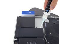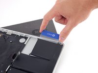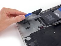Insert an opening pick between the trackpad ribbon cable and the battery.
