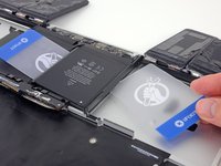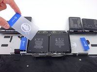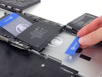 Leave the plastic card underneath the battery cell to prevent it from re-adhering as you proceed to the next step.