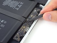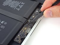 Bend the connector back toward the battery, ensuring that the battery connector doesn't accidentally make contact with the logic board.