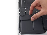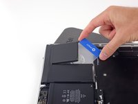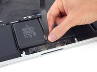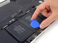 Lift the battery cell to separate it from the MacBook Pro's upper case, but don't try to remove it.