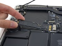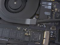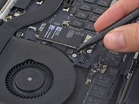 Remove the single 2.9 mm T5 Torx screw securing the SSD to the logic board.