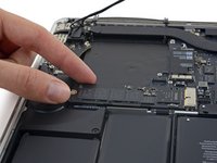 You only need to remove the tape to the edge of the flap. This is enough to be able to pry the battery connector up. +1 to above comment Note that the photo is taken from the hinge side - the other way to the photo in step 3 I chanced it, didnt disconnect the battery and all is well even after giving the insides a good vacuuming before changing the SSD. It is just the top layer of tape that you want to lift, you need to seperate it from the bottom layer. You don’t actually need to remove the tape or even peel it off at all. Just pull up the battery connector up with the tape still attached. pay attention that the macbook in this picture is presented the “wrong side”: if you accidentally remove the tape covering the trackpad cable and thereby also take the trackpad cable out of the zif-socket, your keyboard and trackpad won’t work anymore. putting the trackpad cable back into the (tiny) socket will fix the issue though.