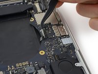 On reassembly it would be great to have some tips on how to properly locate this connector…it’s kind of fussy. Thanks for calling this out. I took a picture of the socket after disconnecting. I can see why it might have been less obvious on reassembly. Also on reassembly - when putting in the logic board make sure this connector is not underneath. Once you have the logic board in, double check and if needed you can slightly lift up the logic board (like to take it out) and use the spudger to scoop it out. I found that this was actually really easy to get back on by using my finger instead of a tool, as I could just wiggle it back and forth slightly until I felt it seat. Hopefully using your fingers isn’t verboten - I was strapped in at the time and everything worked out in the end. the picture is mirrored The picture is not mirrored if you see the heat sink that curves to the up and left it is not mirrored. Ensure the board is completely lined up when reassembling. The cable is incredibly fragile, and I unfortunately ripped mine when trying to line it up. Avoidable error.