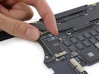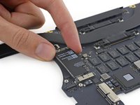 Remove the single 2.9 mm T5 Torx screw securing the SSD to the logic board.