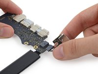 Slightly lift the interior edge of the I/O board and pull it toward the center of the MacBook, away from the side of the case.