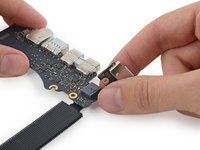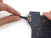 Pull the MagSafe 2 connector straight out of its socket (parallel to the logic board).