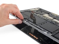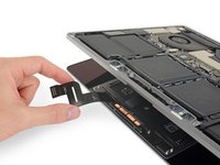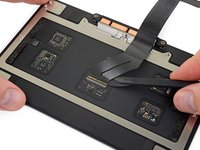 Apply mild heat with an iOpener, hair dryer, or heat gun to soften the adhesive holding the end of the ribbon cable to the trackpad.
