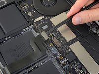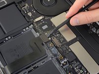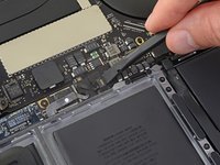 Use a spudger to disconnect the trackpad cable by prying its connector straight up from the logic board.